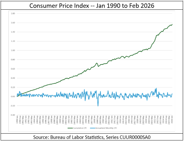 From the beginning of 1990, it took over 29 years for prices to double. Since April 2019, prices are up almost 29%, 21% of which happened during the Biden Administration, and approximately 4% in Trump’s second term so far.